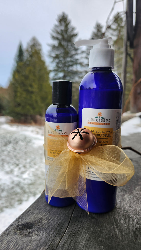 This duo of hand cream and body lotion is perfect for anyone living in an artificially heated, dry environment, especially using chlorinated water. They will keep your skin soft, hydrated and healthy. Ingredients include: Calendula, Marshmallow, Aloe and several oils which will soothe and hydrate, plus special oils that help with quick absorption. Both are long lasting, so no need for frequent applications!